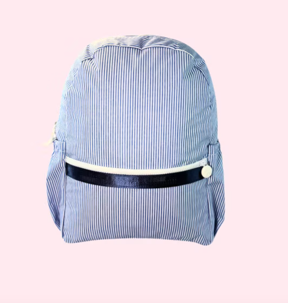 Mint Seersucker backpack! Kids as young as 3 can handle this bag if they are required to carry a folder to school but will fit kids all the way up to tween size.