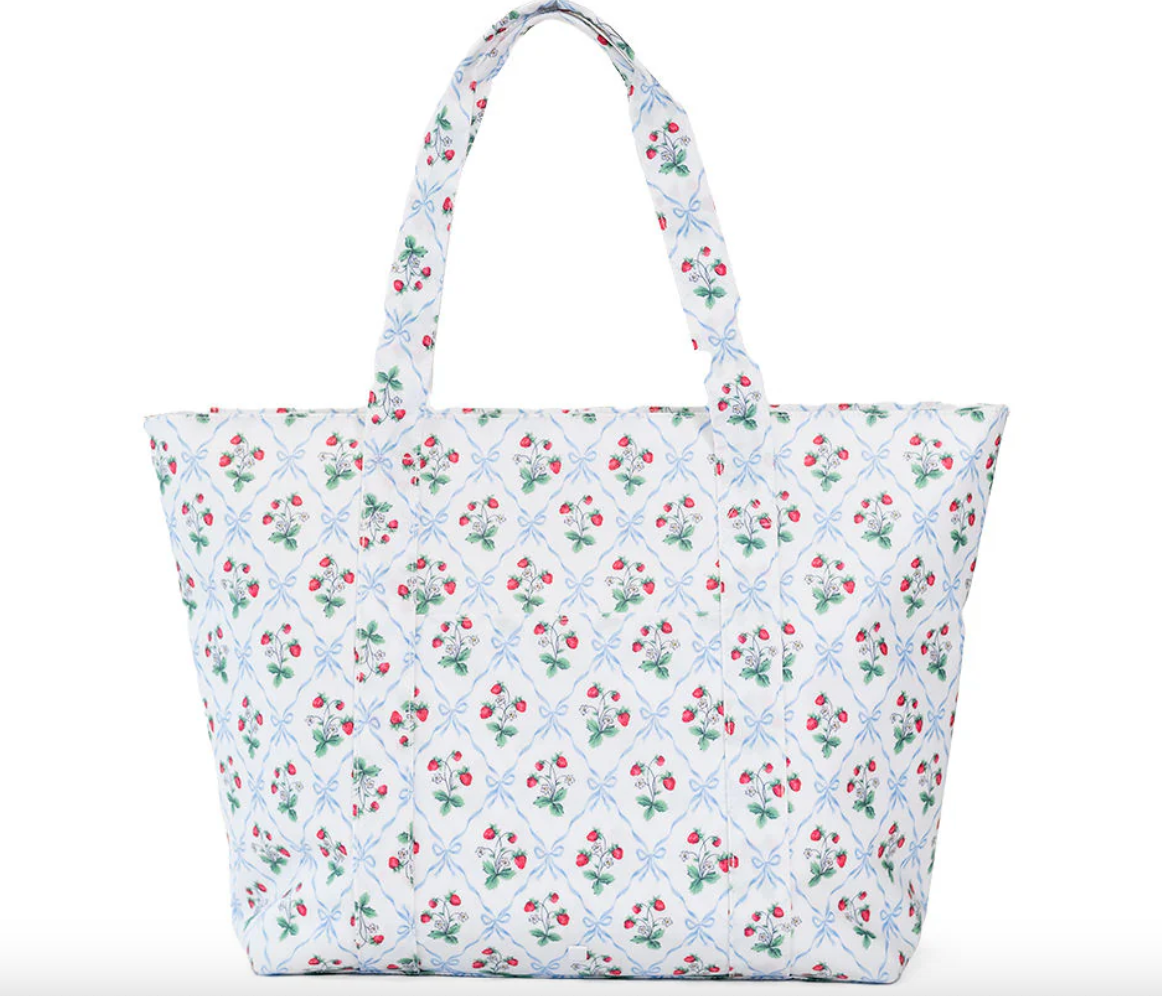 The do it all bag! Perfect for errands, travel and beach! Underneath the strap is satin webbing designed to prevent from slipping, and interior full slip pocket and zip pocket, a front exterior pocket, and an exterior trolly pocket. This is coated with the signature TRVL coating! Water and stain resistant & wipeable inside and out.